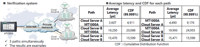 The MX109030PC enables accurate and reproducible evaluation of network quality, even in environments where physical test equipment cannot be installed. It is compatible with AWS cloud environments and supports measurement points within virtual communication paths.